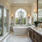 Expansive windows not only flood the space with sunshine but also accentuate the nuanced hues of an off-white palette. I often advise opting for minimal window treatments to maximize the airy atmosphere of the area.