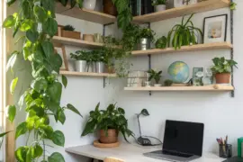 Eco-friendly elements harmonize beautifully with palm accents for a sustainable look.