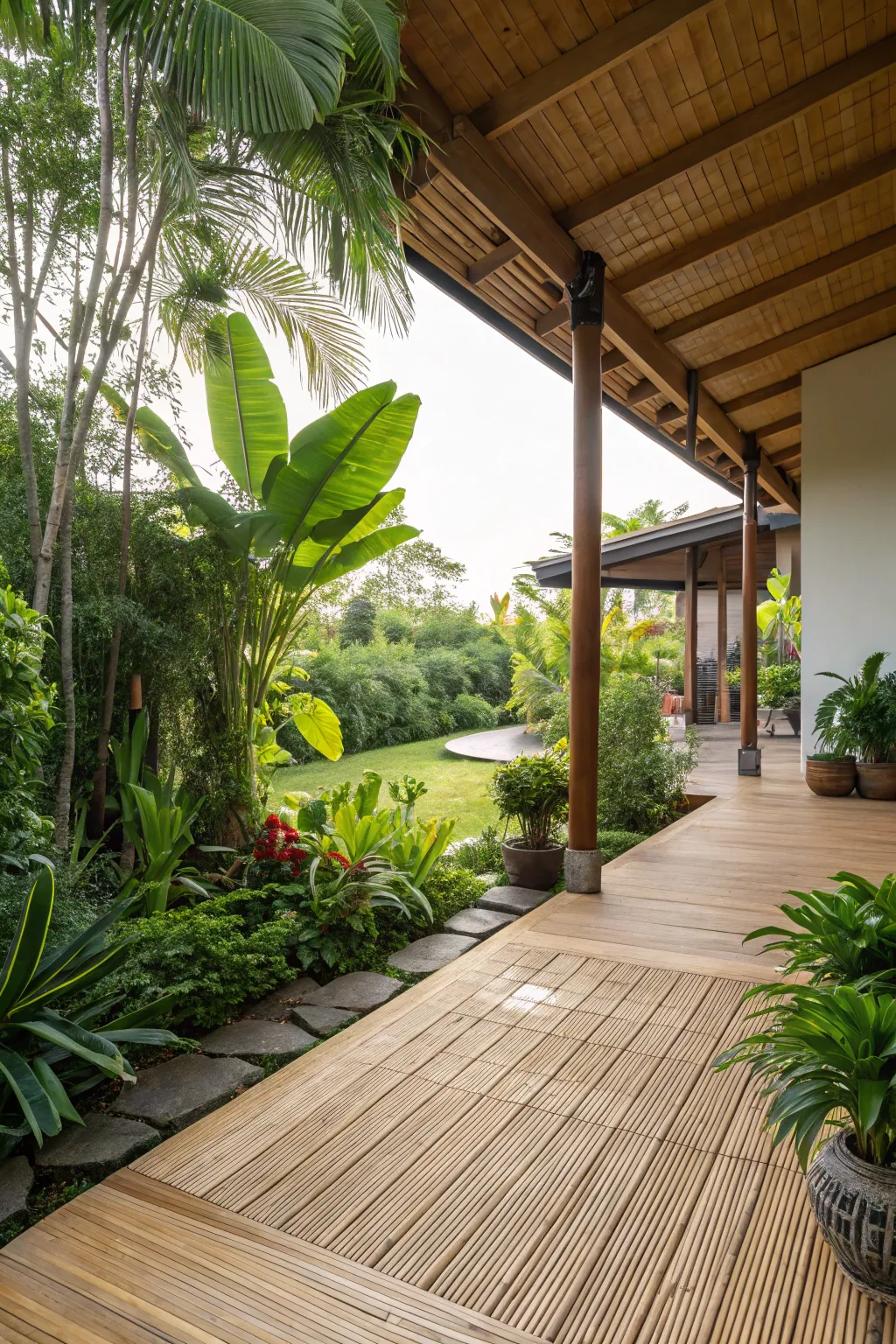 Bamboo flooring provides an eco-friendly and stylish option with its natural patterns. I love how it creates a serene, tropical feel that promotes relaxation.
