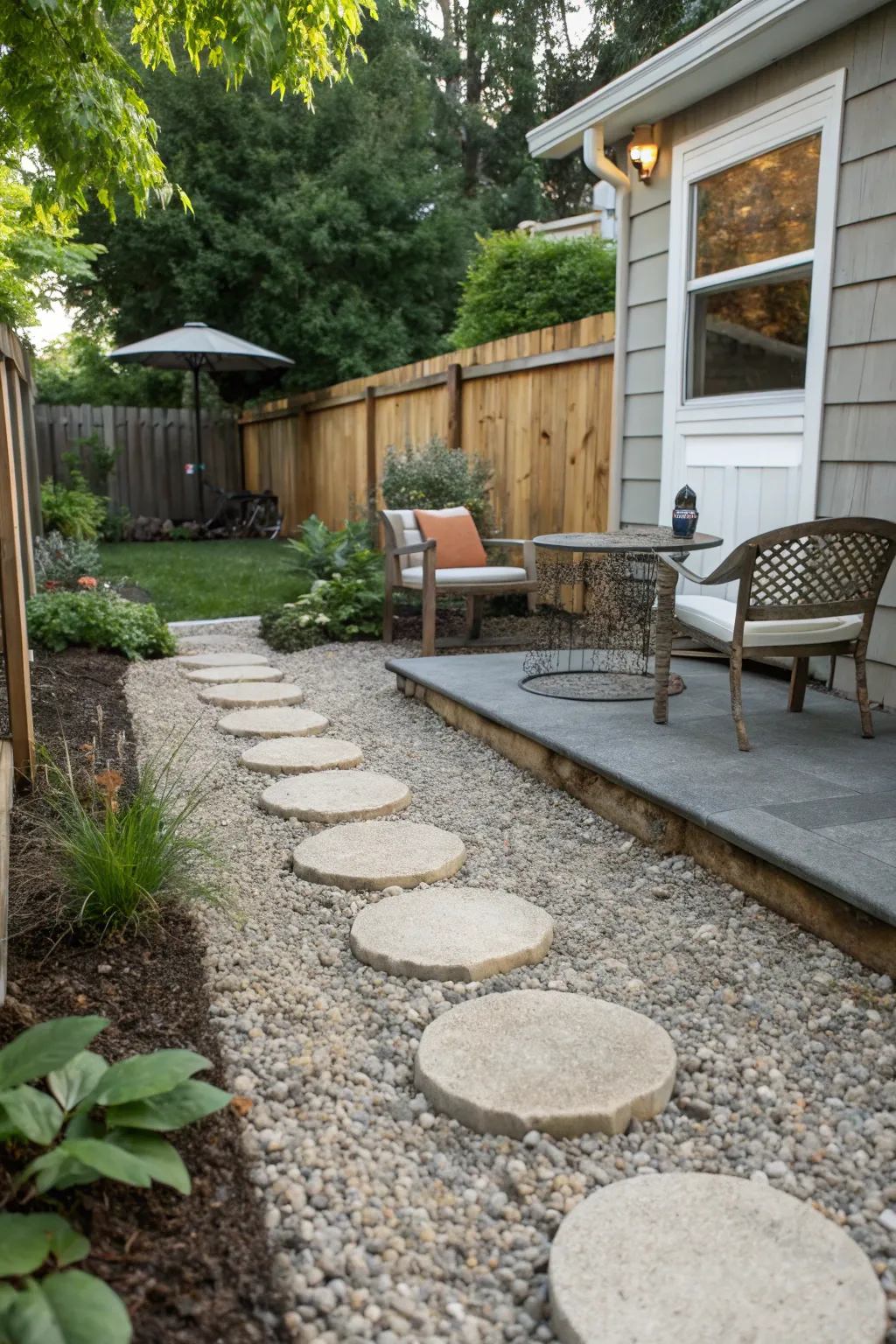 Combine smooth stones with a few thoughtfully placed pavers for a natural and cost-effective appearance. This mix is ideal for a simple, relaxed outdoor area.