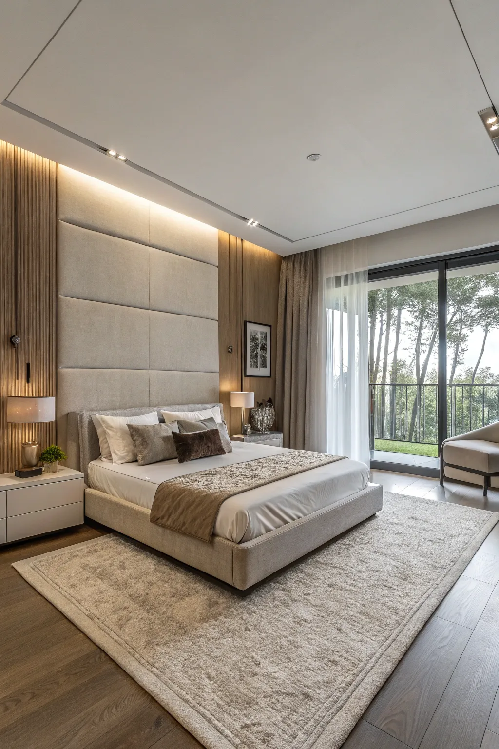 • Rug: Modern Geometric Area: Introduce texture and style with a bold geometric area rug, fitting perfectly into any bedroom decor.