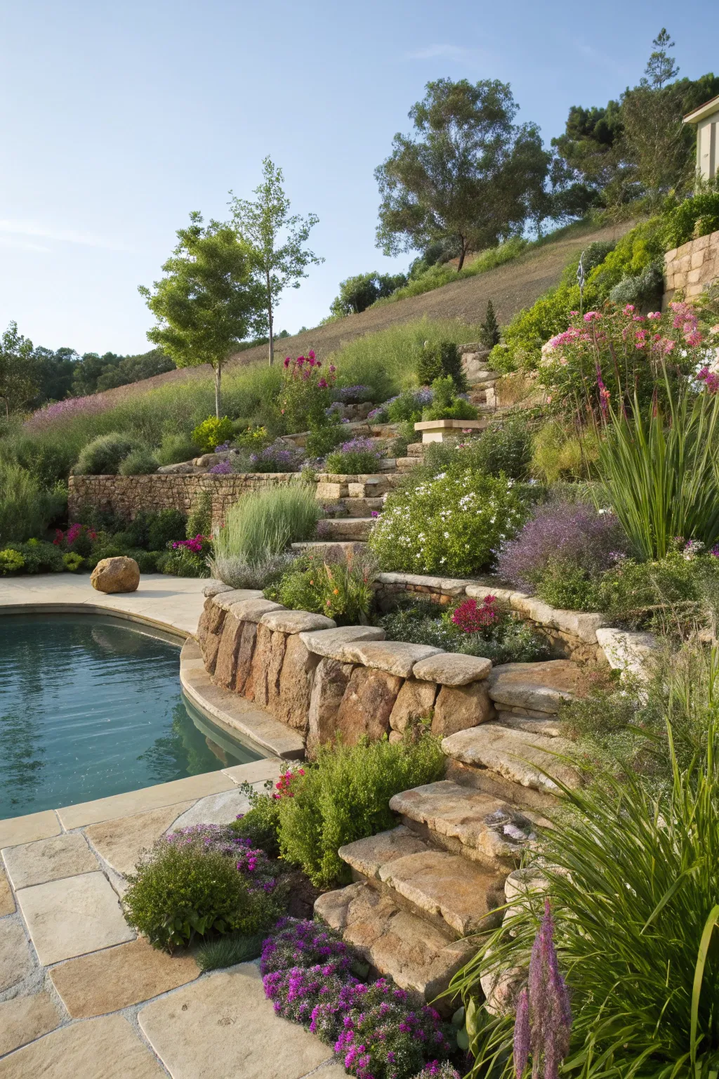 Incorporate gradual landscapes surrounding your pool for a stunning impact. It’s a fantastic way to showcase various plantings and create a rich background.