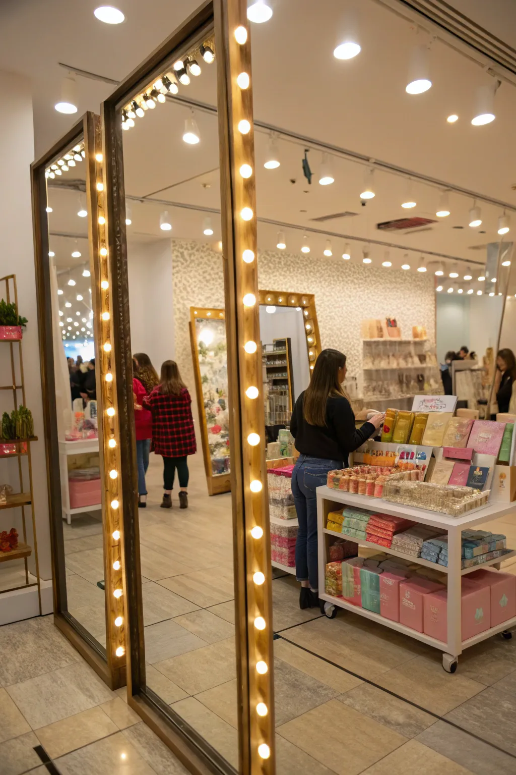 Mirrors can give the illusion of greater space and elevate the display. I place them thoughtfully to amplify light and deepen visual perception.