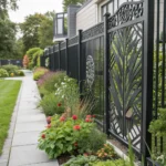 - Minimalist Metal Fence Boards: Elevate your backyard’s modern appearance using sleek metal boards, delivering style and privacy.
