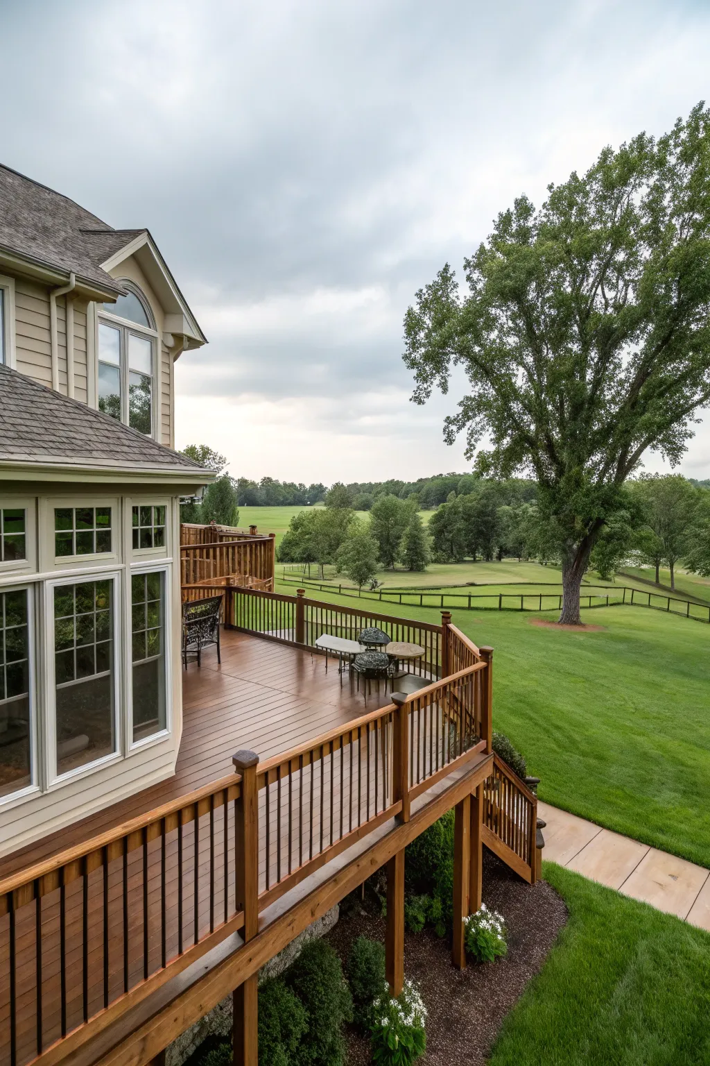 An all-encompassing deck not only broadens your usable area but also links diverse sections of your home smoothly. Consider it a warm embrace for your house!