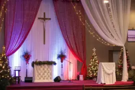 Design a stunning red streamer overhead decor for a fully immersive experience. I’ve used this to transform my living space into a festive scarlet paradise.