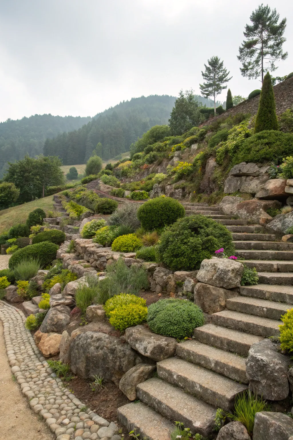 - Evergreen Stone Garden Plants: Add vibrant hues to your layered garden through low-maintenance evergreen plants.