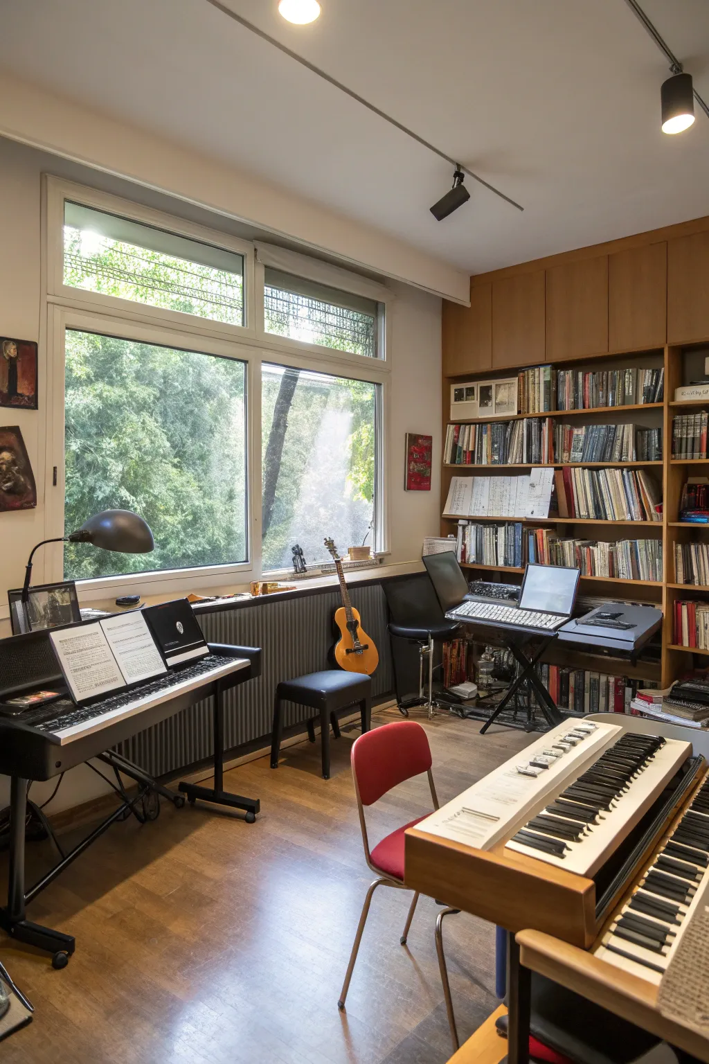 Envision your music room as a multipurpose space, suitable for both practice and leisure. I have observed that blending musical activities with relaxation fosters an environment that is both productive and refreshing.