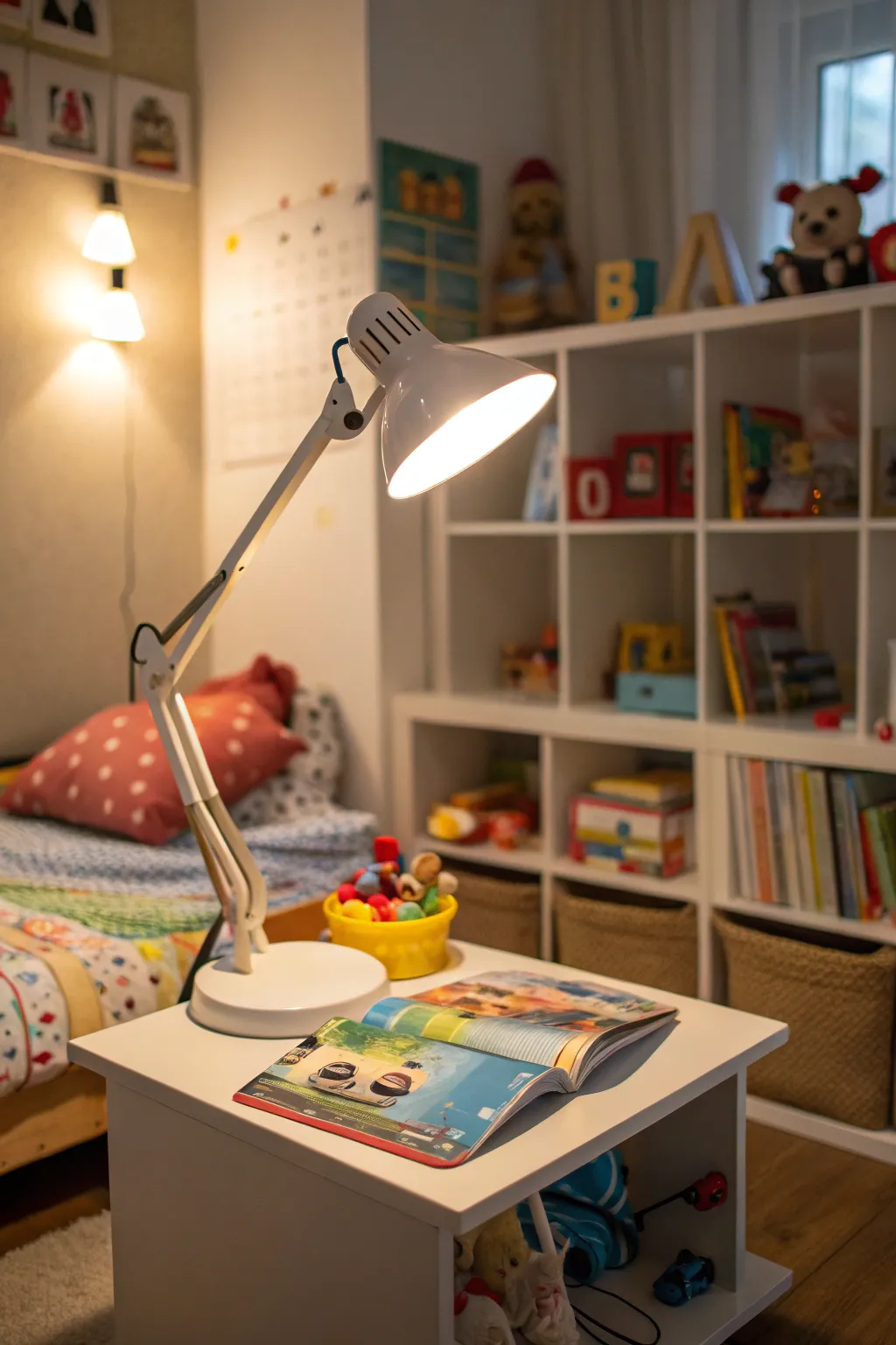 Use an adjustable lamp or night light that children can easily operate themselves. This empowers them to control their environment, enhancing comfort and security.