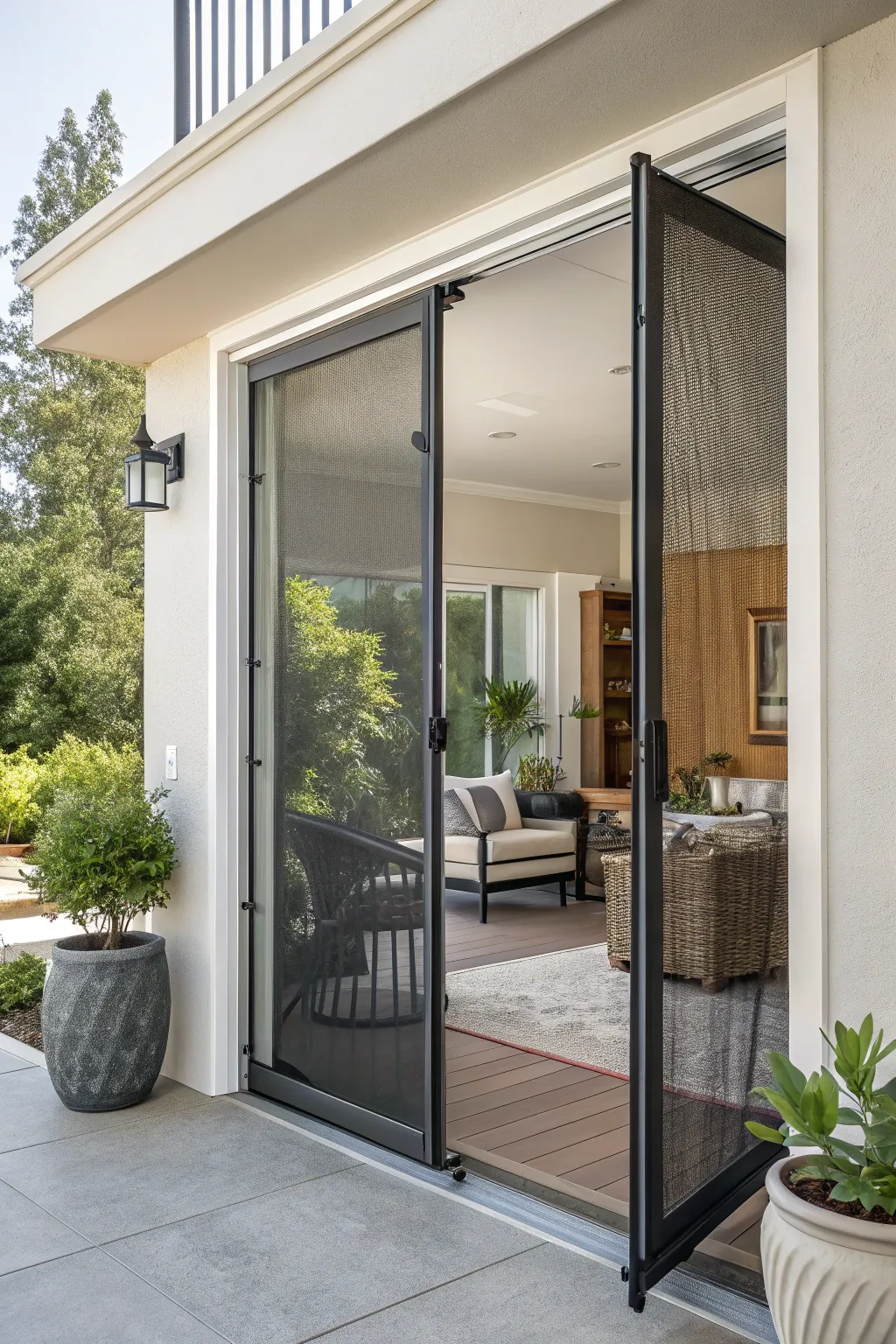 For a practical yet refined solution, think about a magnetic mesh screen door. It’s hands-free and ideal for blocking insects while allowing fresh airflow.