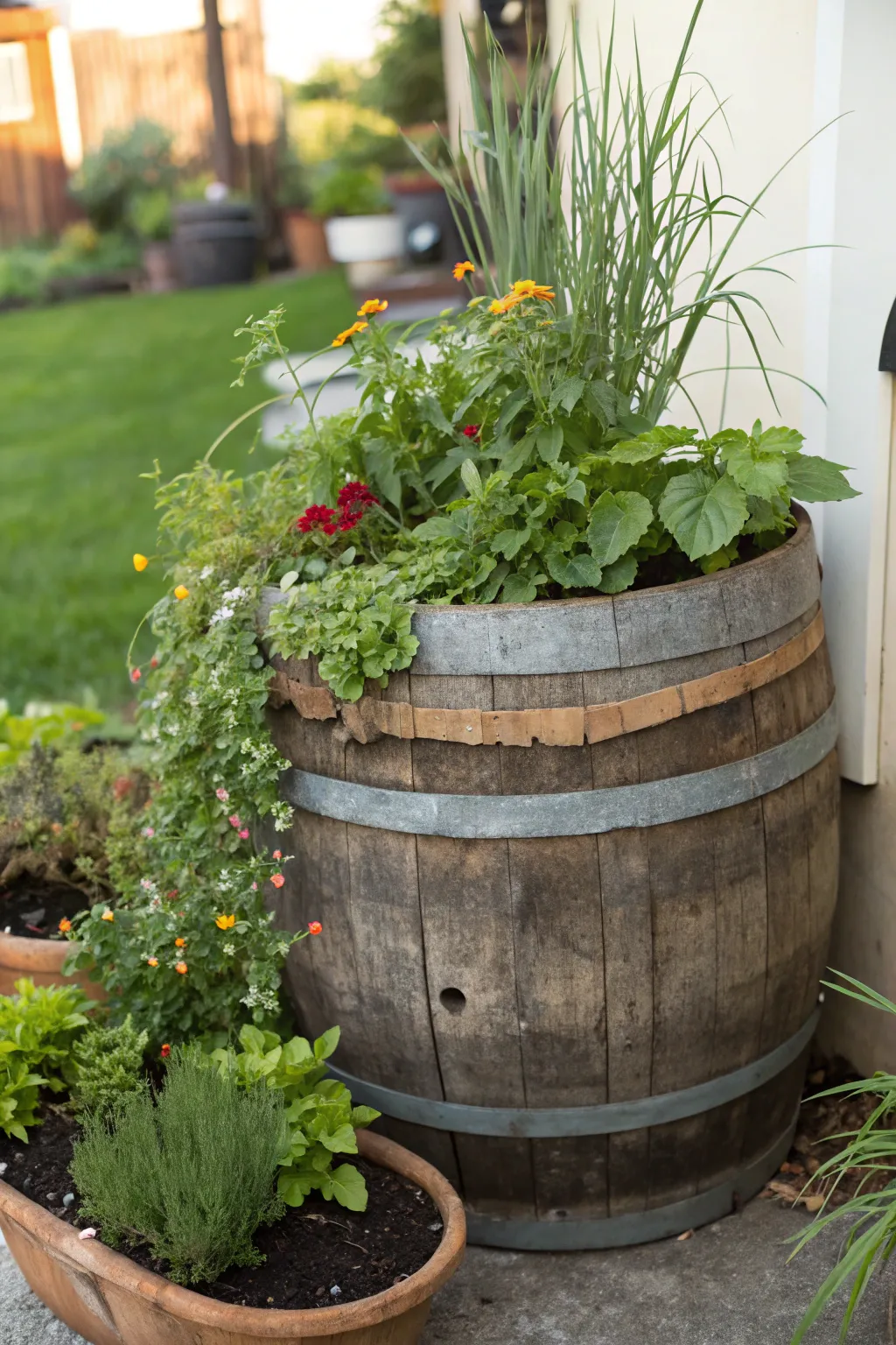 Give new life to old items like wooden boxes and drums as unique planters. I converted an old wine barrel into a mini garden, which looks lovely and aligns with my passion for sustainability.
