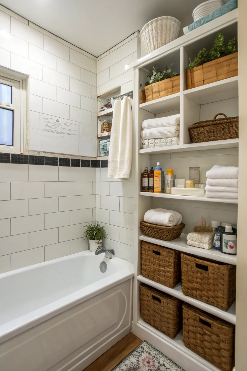 Vertical storage options make the most of your bathroom’s height while keeping the floor tidy and spacious. In a lot of my small bathroom projects, this strategy has worked wonders.