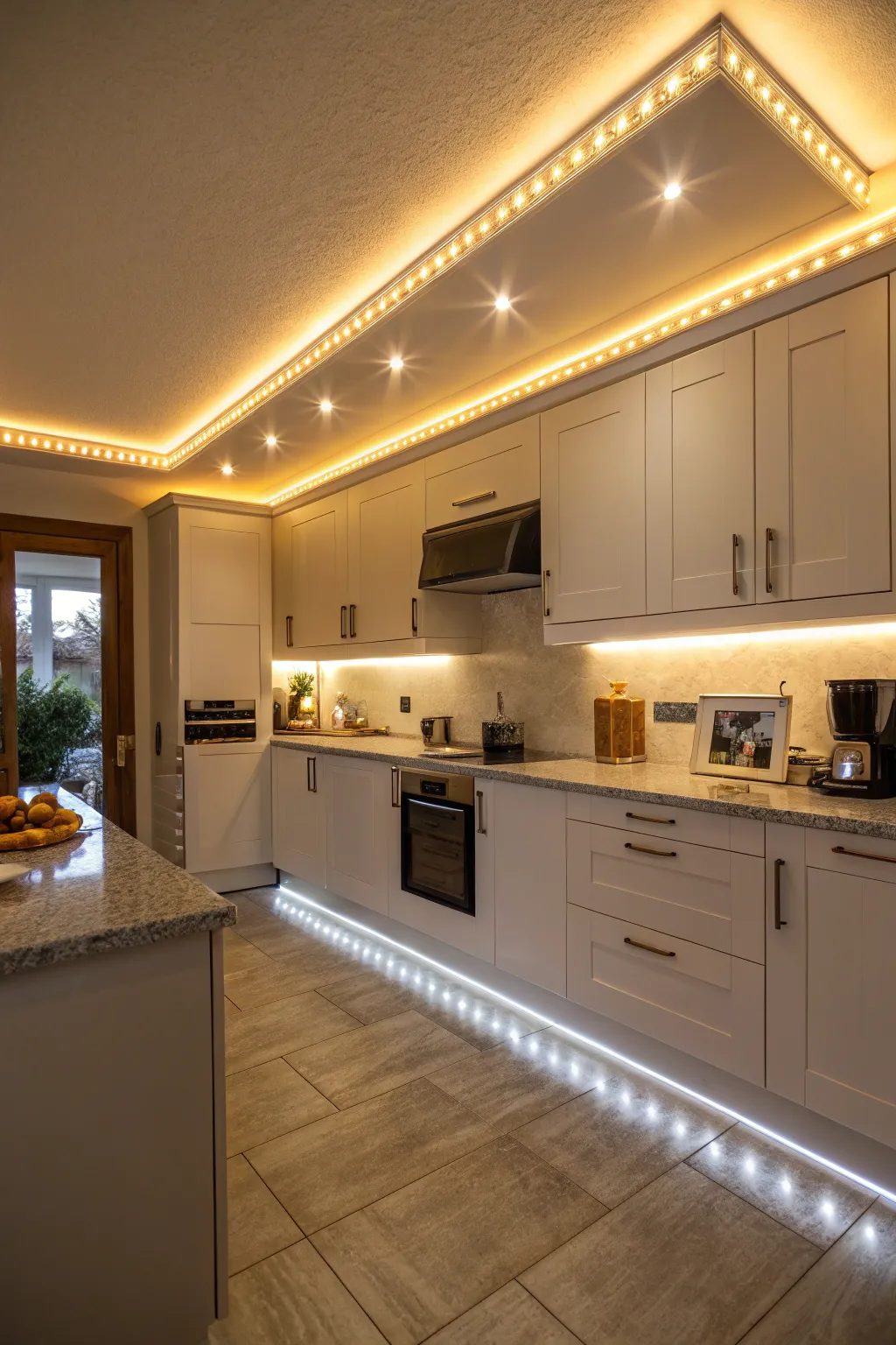 - ShadowGlow Strips: Illuminate your kitchen covertly with versatile ShadowGlow strips for a hidden, stunning glow.