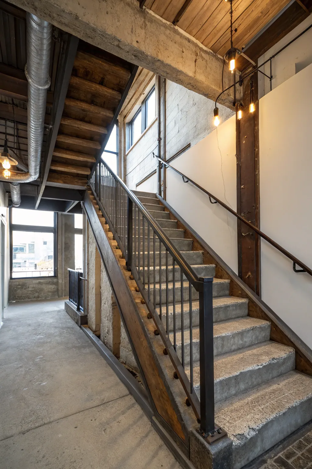 - Exposed Steel Supports: Enhance your stairs using rugged steel supports for a raw, factory aesthetic.