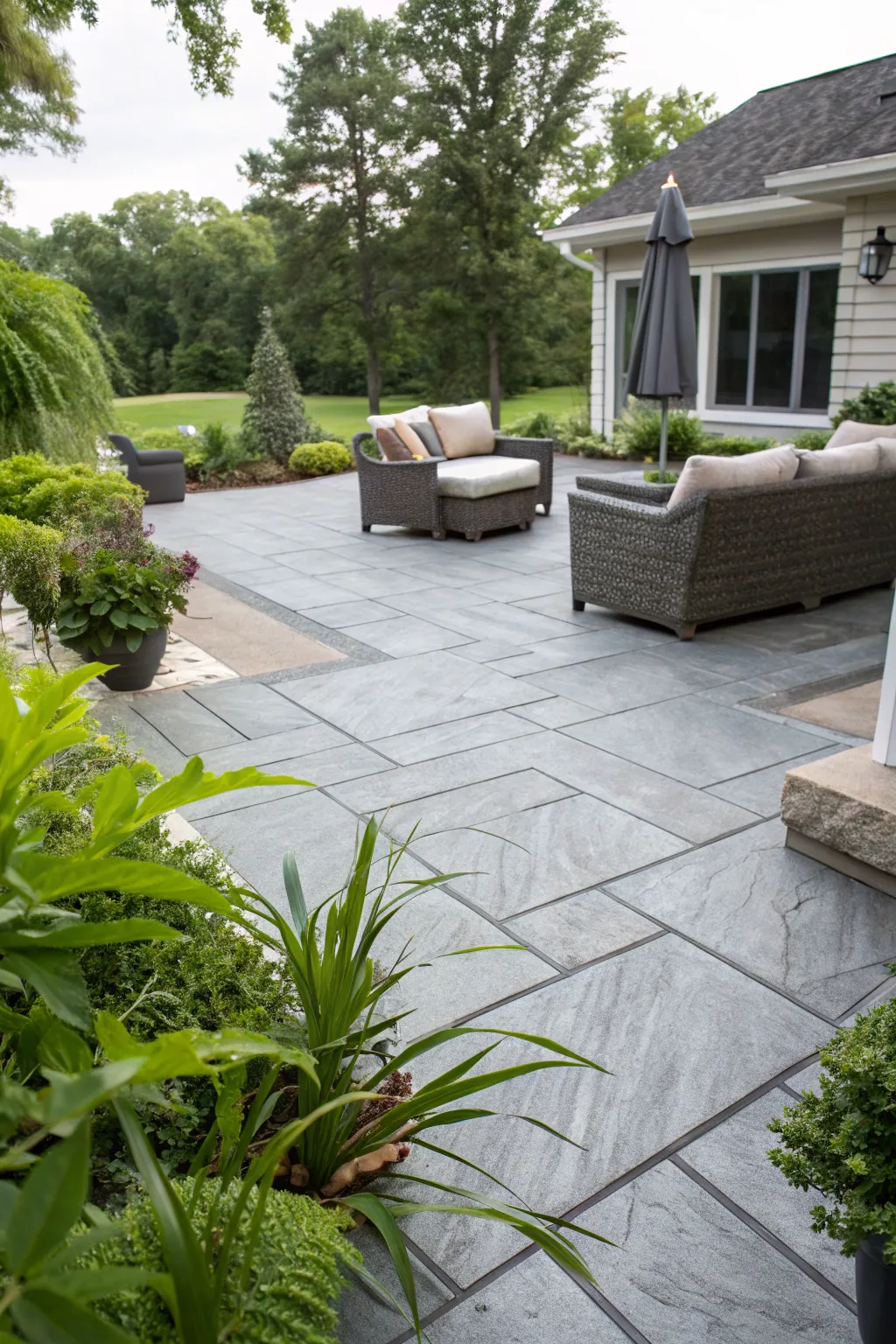 For a comfortable, traditional sensation, brick-patterned imprinted concrete is unmatched. I utilized it to establish a warm and inviting patio area, suitable for hosting summer cookouts.