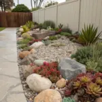 Stone risers are not merely functional but also infuse a quaint allure into your entrance. I’ve observed that utilizing expansive, smooth stones fashions a natural and appealing visual.