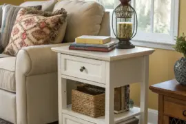 By adding a tray, you may turn a wood stool into a useful side table. This adaptable piece is perfect for individuals who adore multipurpose furniture, which is a concept I frequently explore.