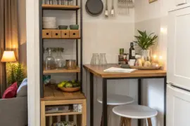 A small wood stool is ideal for small areas because it is compact and versatile. Because of its lightweight design, it is simple to store, a solution that I frequently employ in urban flats.