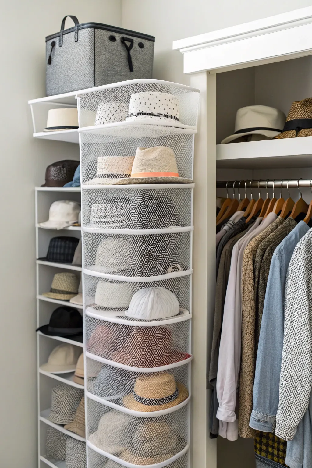 - Hanging Mesh Wardrobe Organizer: Keep your hats organized and dust-free with this breathable hanging mesh wardrobe organizer.