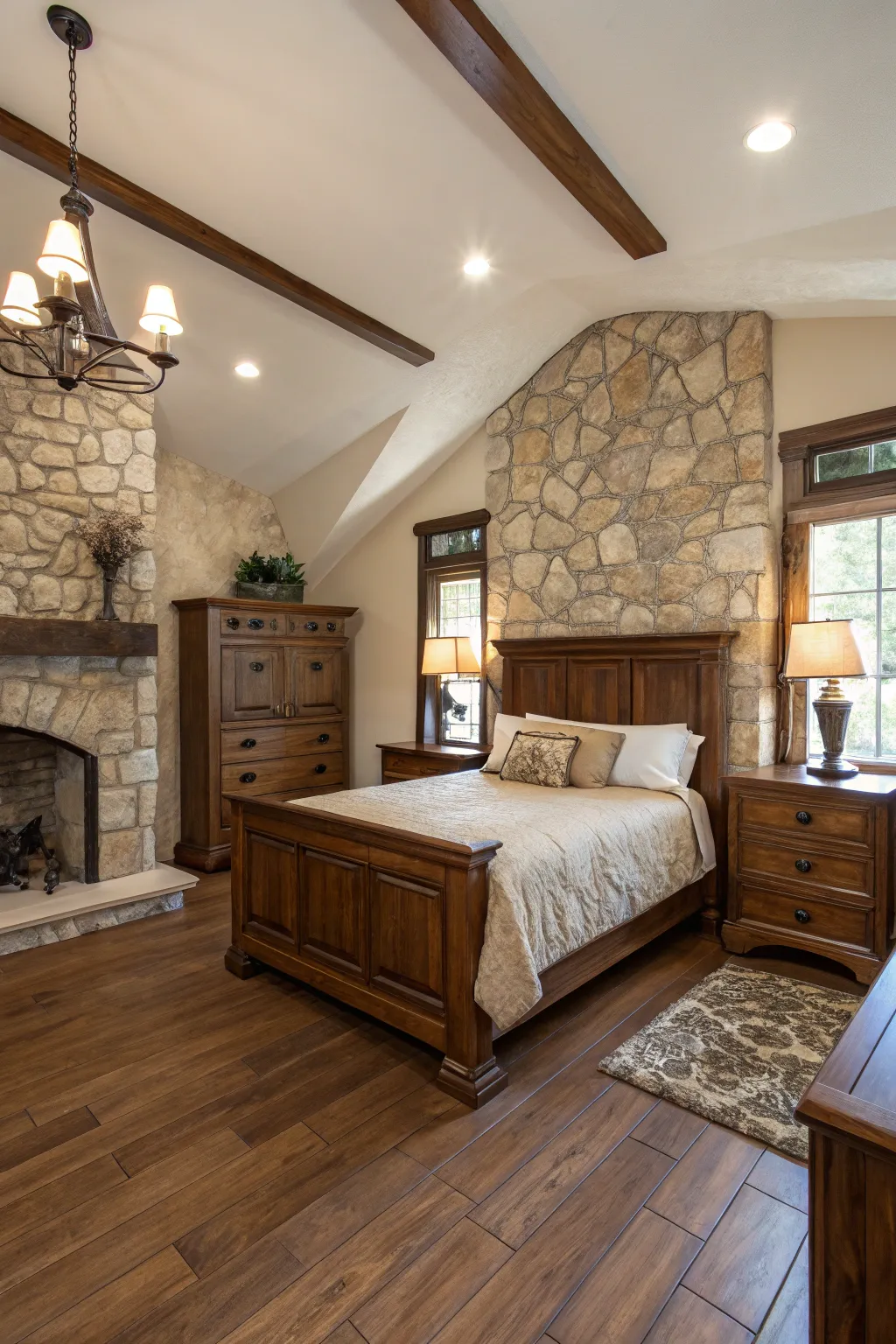 The use of organic textures, like stone and wood, can help to ground your bedroom in nature. I enjoy utilizing these components to create a warm, friendly ambiance.