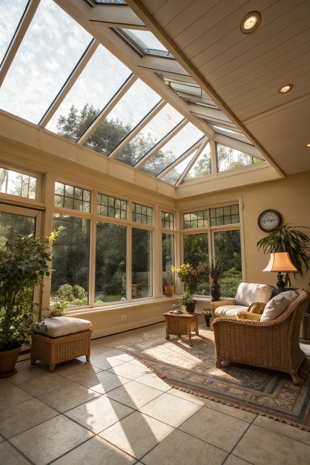 A rooflight can greatly enhance the brightness of a sunroom, providing views of the sky above. In my projects, I use rooflights to further merge the lines between indoor and outdoor spaces.