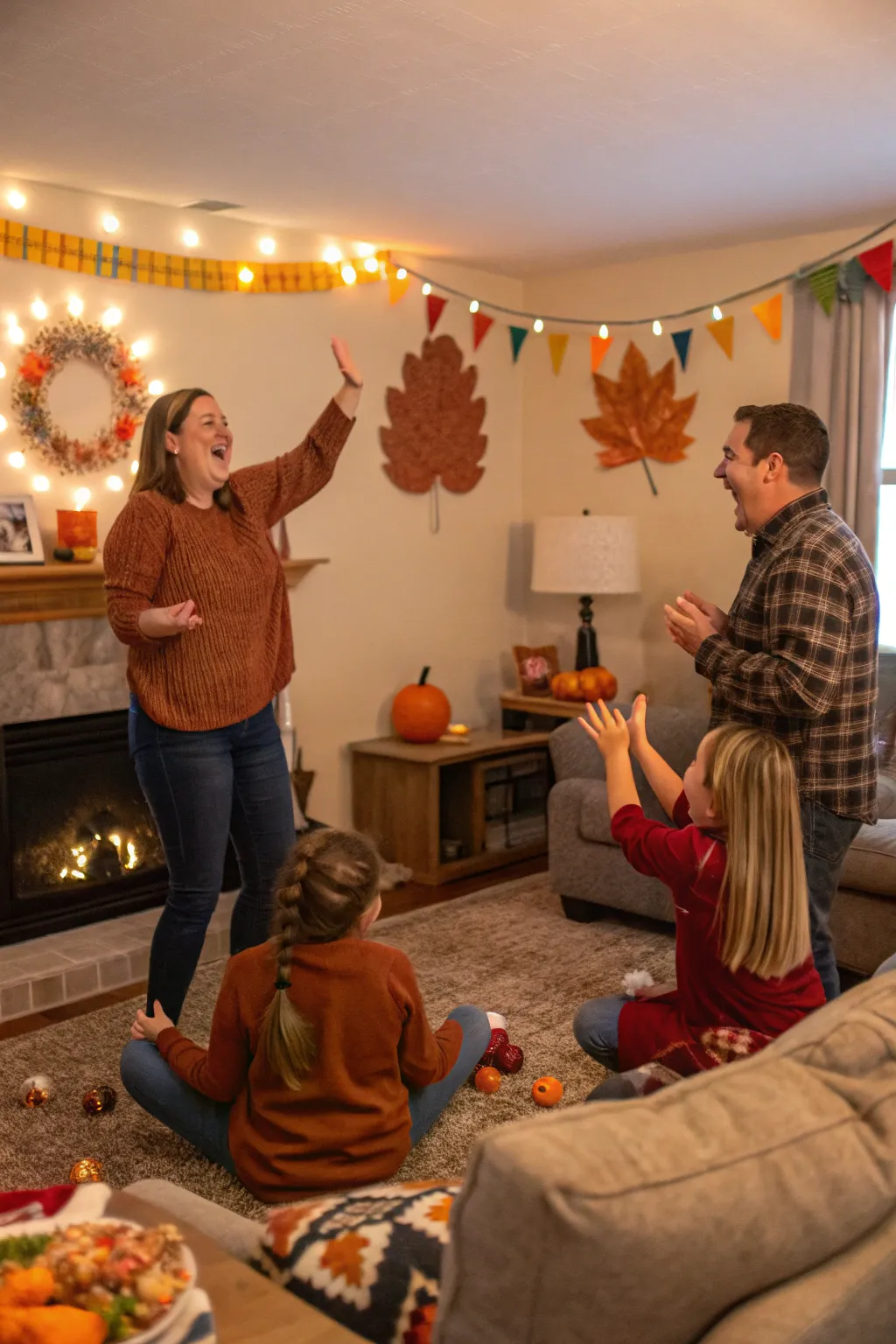 Invigorate your gathering with a spirited game of Thanksgiving pantomime. It’s an amusing and interactive avenue to elicit laughter and engagement from everyone.