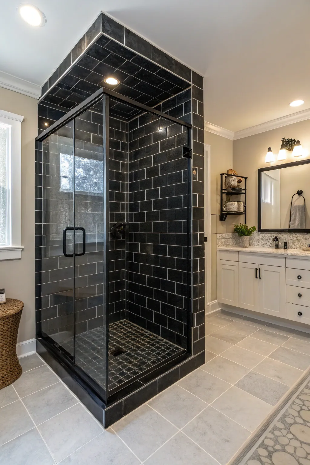 - Charcoal Shower Squares: Improve your shower’s appeal with chic dark squares, perfect for a daring, up-to-date design.