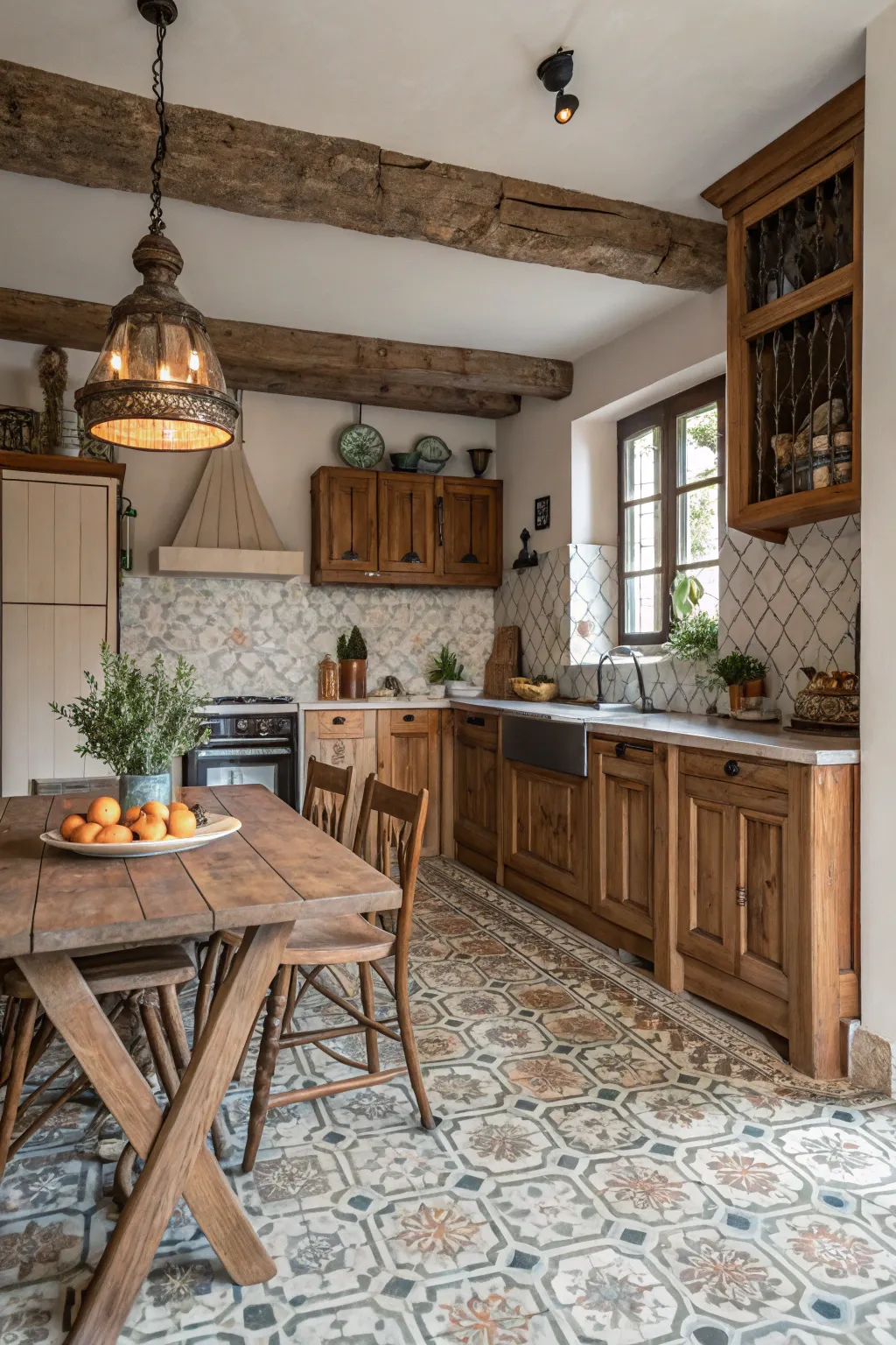 Mosaic tiles usher artisanal warmth and character to this kitchen.