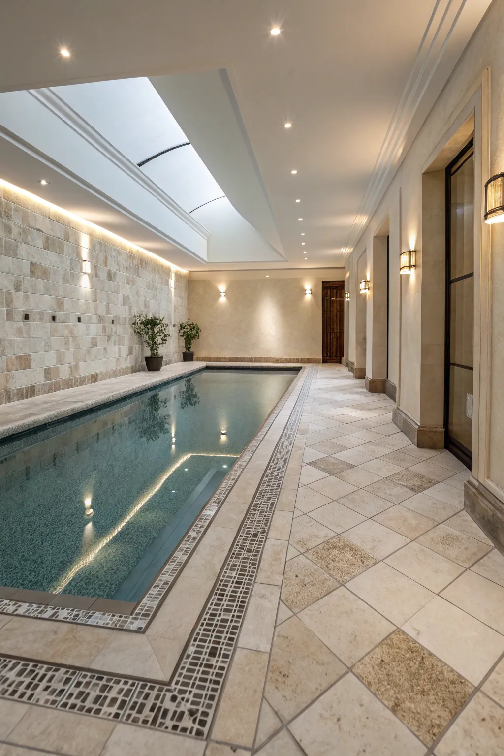 - Refined Mosaic Pool Accent Tiles: Introduce a dash of refinement using mosaic accent tiles, effortlessly improving contemporary pool designs.