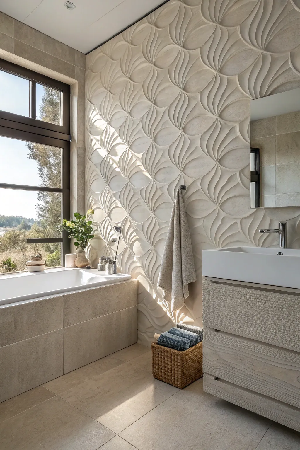 - Sculpted Bathroom Wall Panels: Change your bathroom with elegant sculpted wall panels, effortlessly adding remarkable dimension and texture.