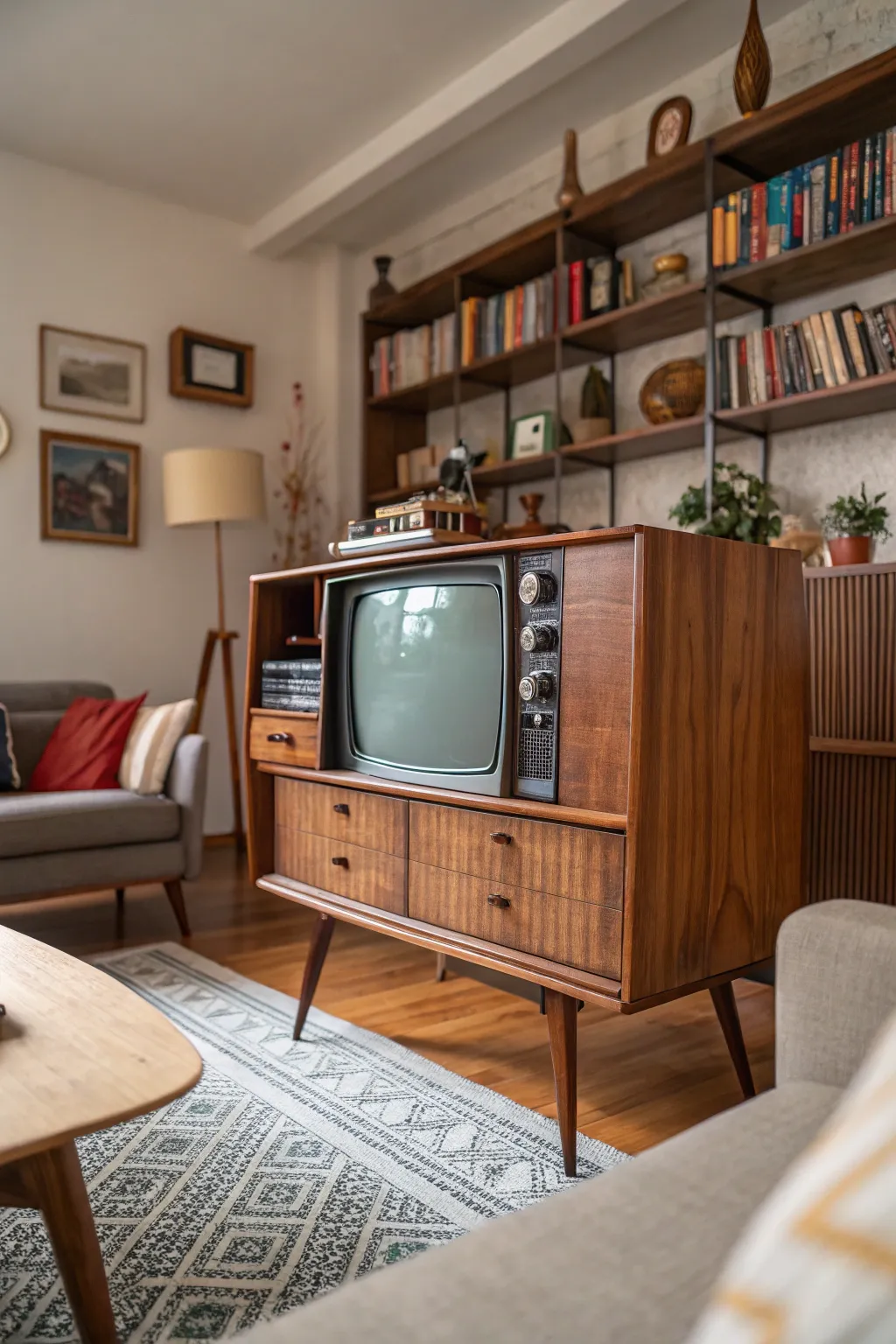 A vintage TV console can truly spark conversation. I’ve used vintage pieces to add character and nostalgia, creating a warm, inviting atmosphere.