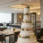 A wedding cake embellished with blue flowers or ribbons is simultaneously striking and memorable. I am enamored with how it transforms into a focal point that continually draws admiration from guests.