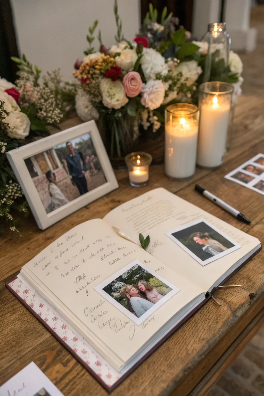 Make a fun guest log with Polaroid pictures. Guests can take a picture and leave a message, which makes it a fun and personal keepsake.