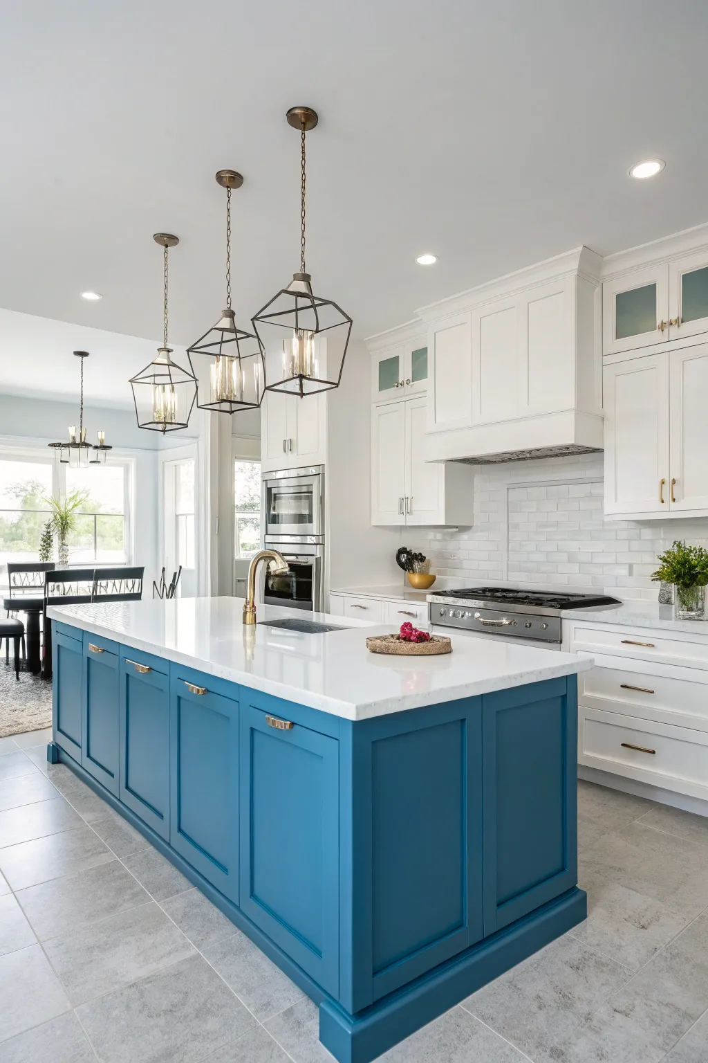 Think about adding a bold kitchen island to your all-white setting for a vibrant touch. I once created a kitchen that featured a dazzling azure island, which instantly became the centerpiece, accentuating the crispness of the white cabinetry.