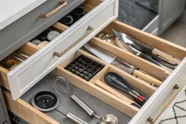 - Sub-Cupboard Drawer: Install a sub-cupboard drawer to hide utensils and keep countertops clutter-free efficiently.