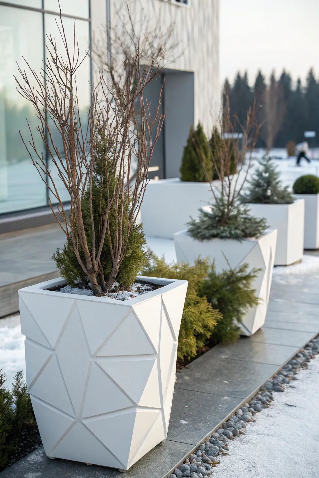 - White Ornamental Twigs: Introduce style with ornamental twigs that create stunning winter contrasts in your outdoor planters.
