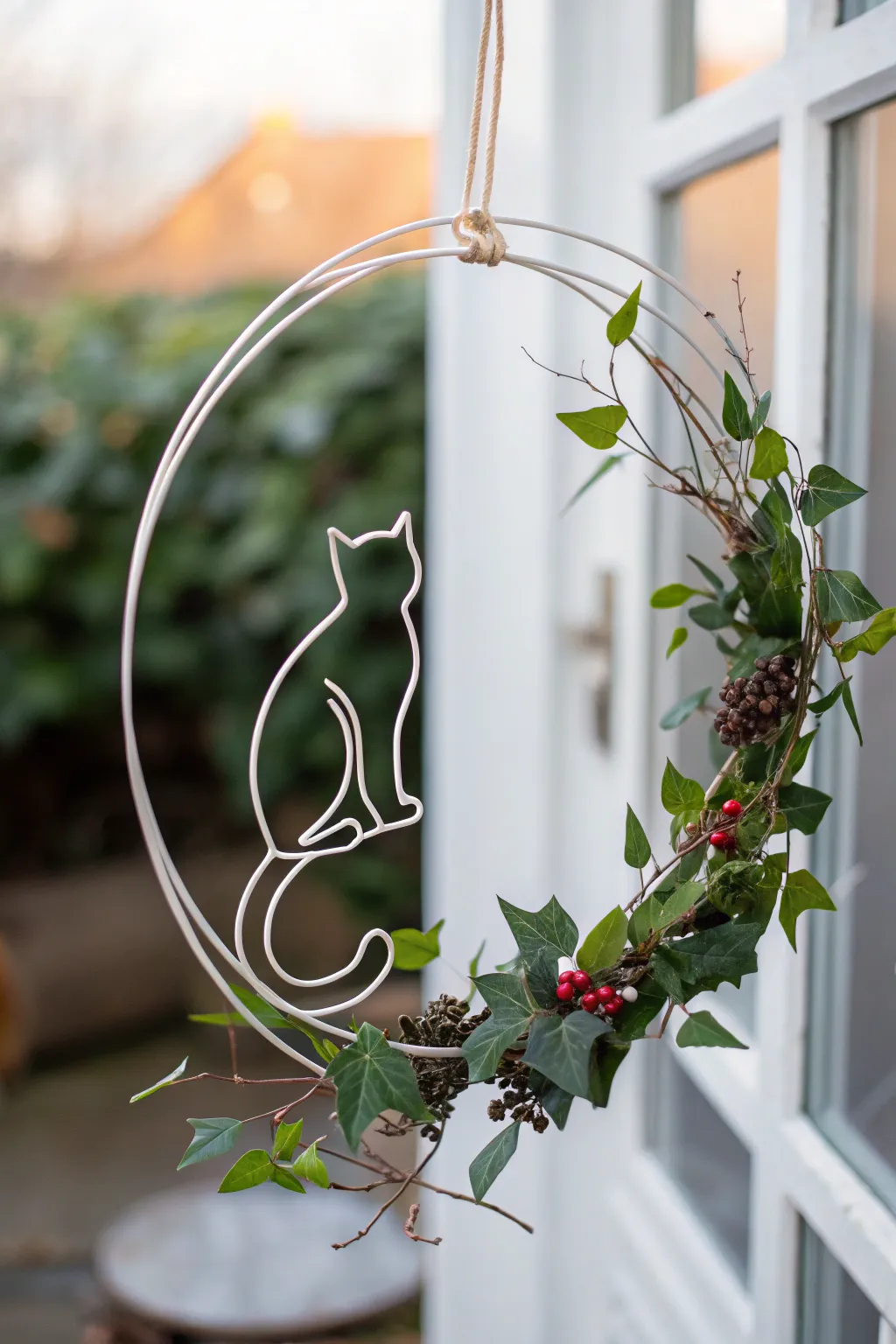 A facile feline contour fashioned from wire or string can fashion a subtle yet elegant decorative loop. I adore this minimalist approach for a pristine and modern semblance.